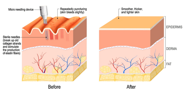Microneedling is effective in correcting damaged skin. The skin is stimulated to produce new skin cells which replace the old ones. As the old layer of skin peels off, fine lines, wrinkles and crow’s feet get noticeably reduced.